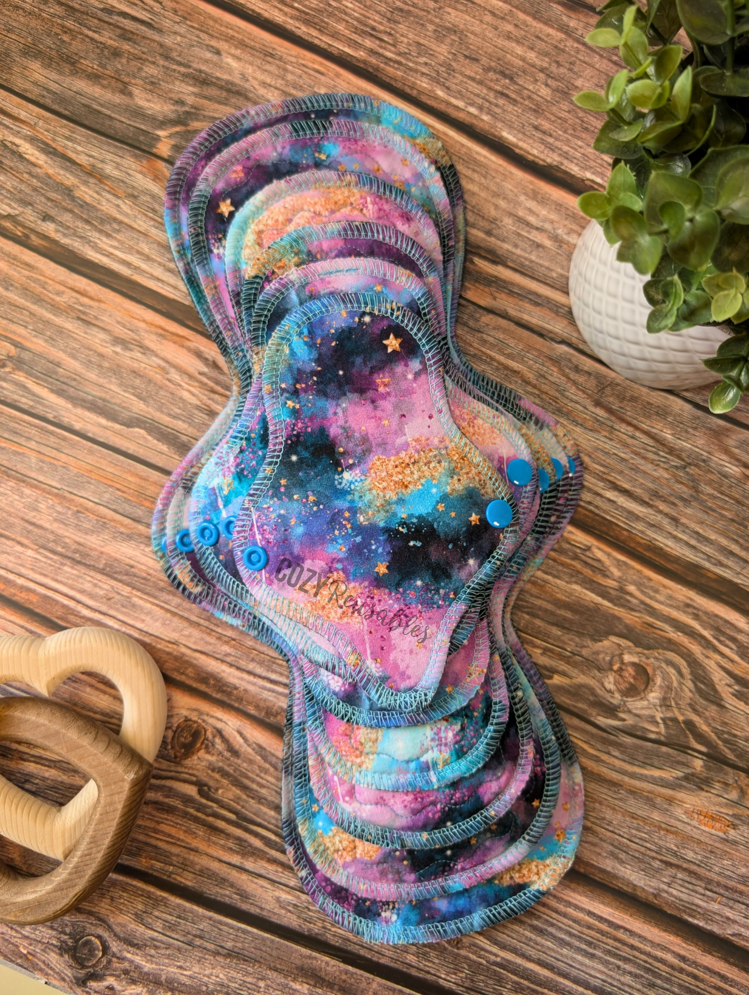 "Cosmic Glitter" Basic shaped Serged Cloth Pad • Cotton French Terry Topper • Wavy Stitched Core