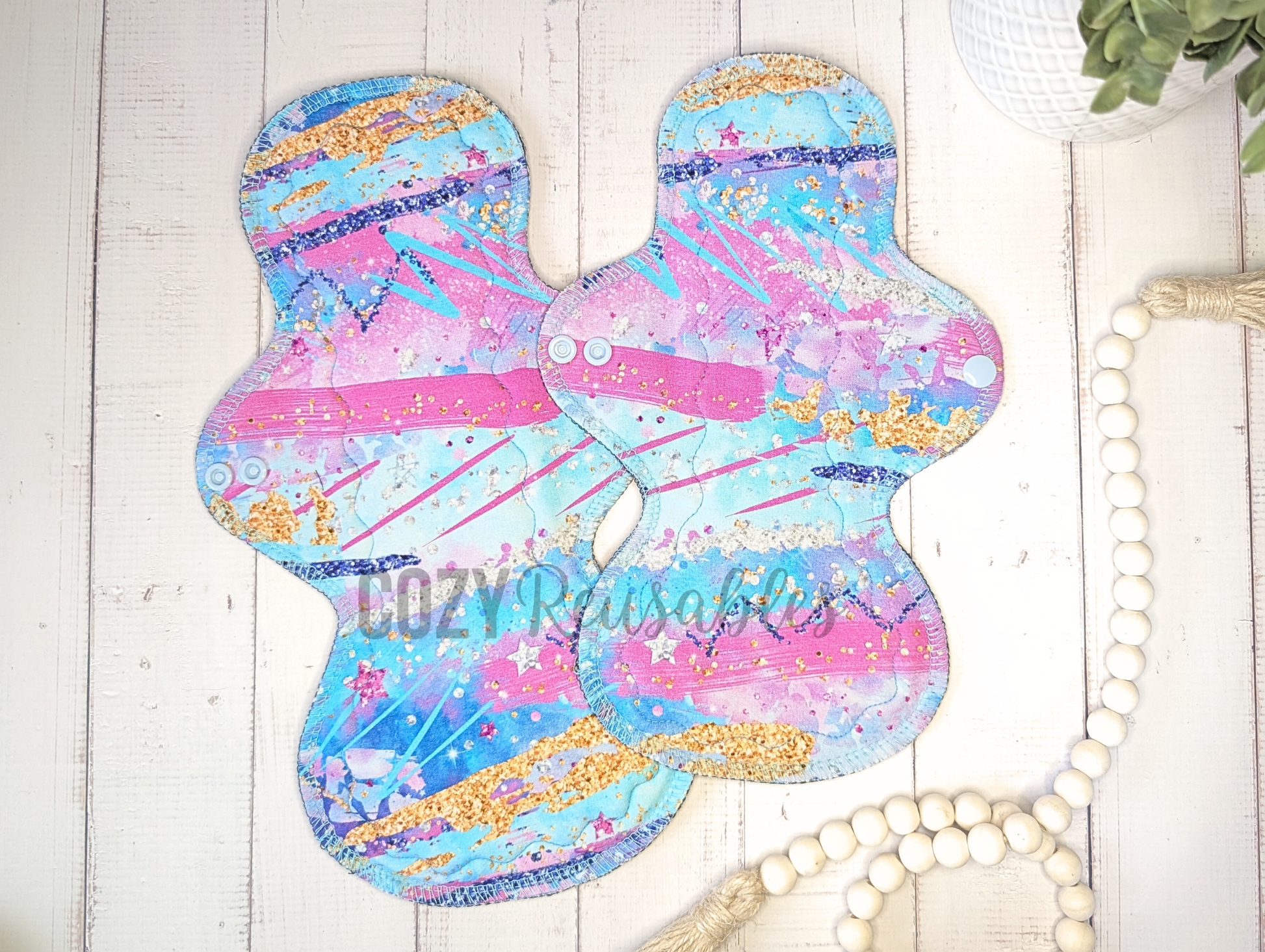 "Glitter Dixie" Mega Flare shaped Serged Cloth Pad • Cotton French Terry Topper • Wavy Stitched Core