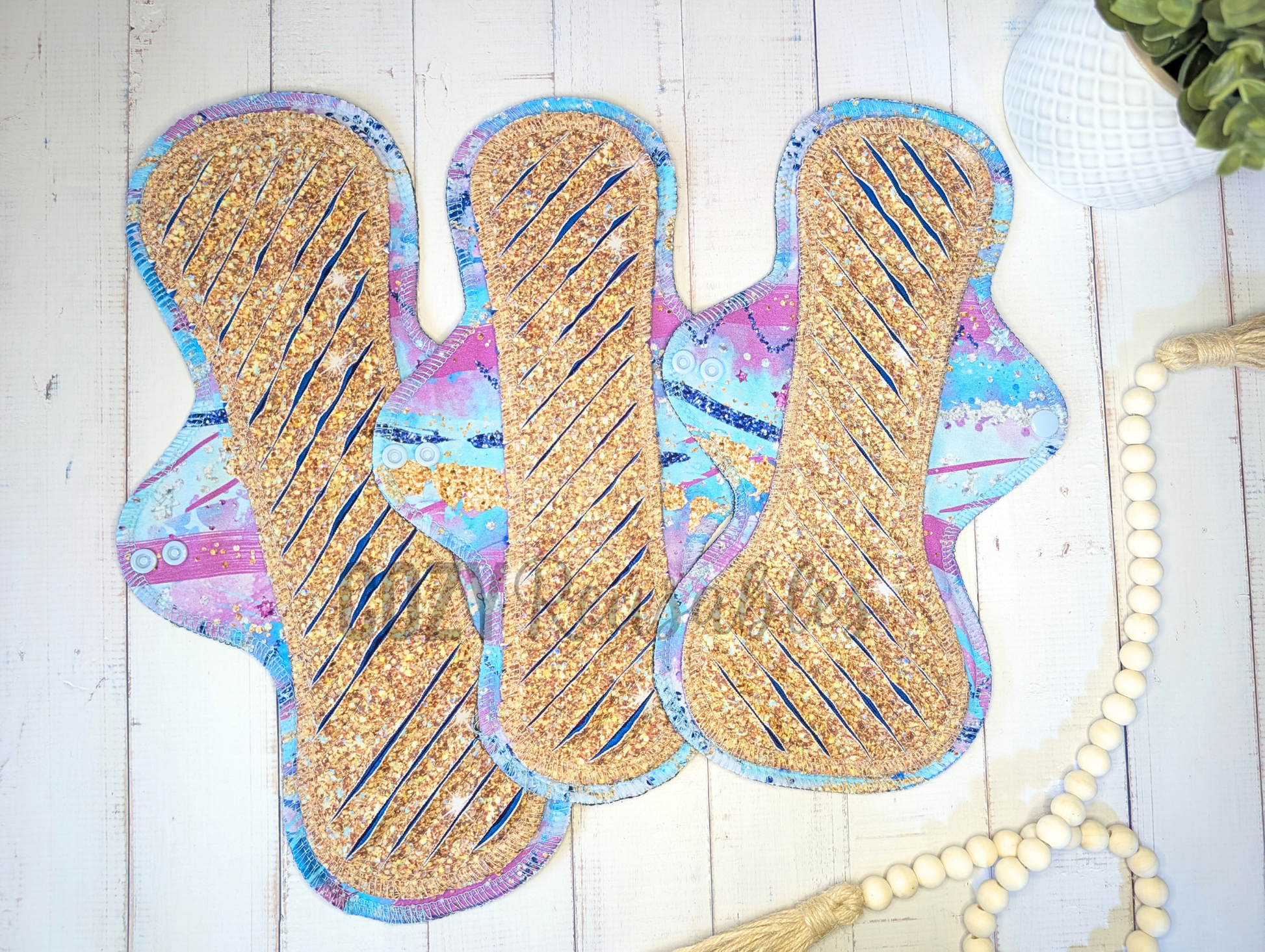 "Golden Dixie" Exposed Core GUSHER Serged Cloth Pad - Cotton French Terry, Cotton Spandex & Flannel Toppers